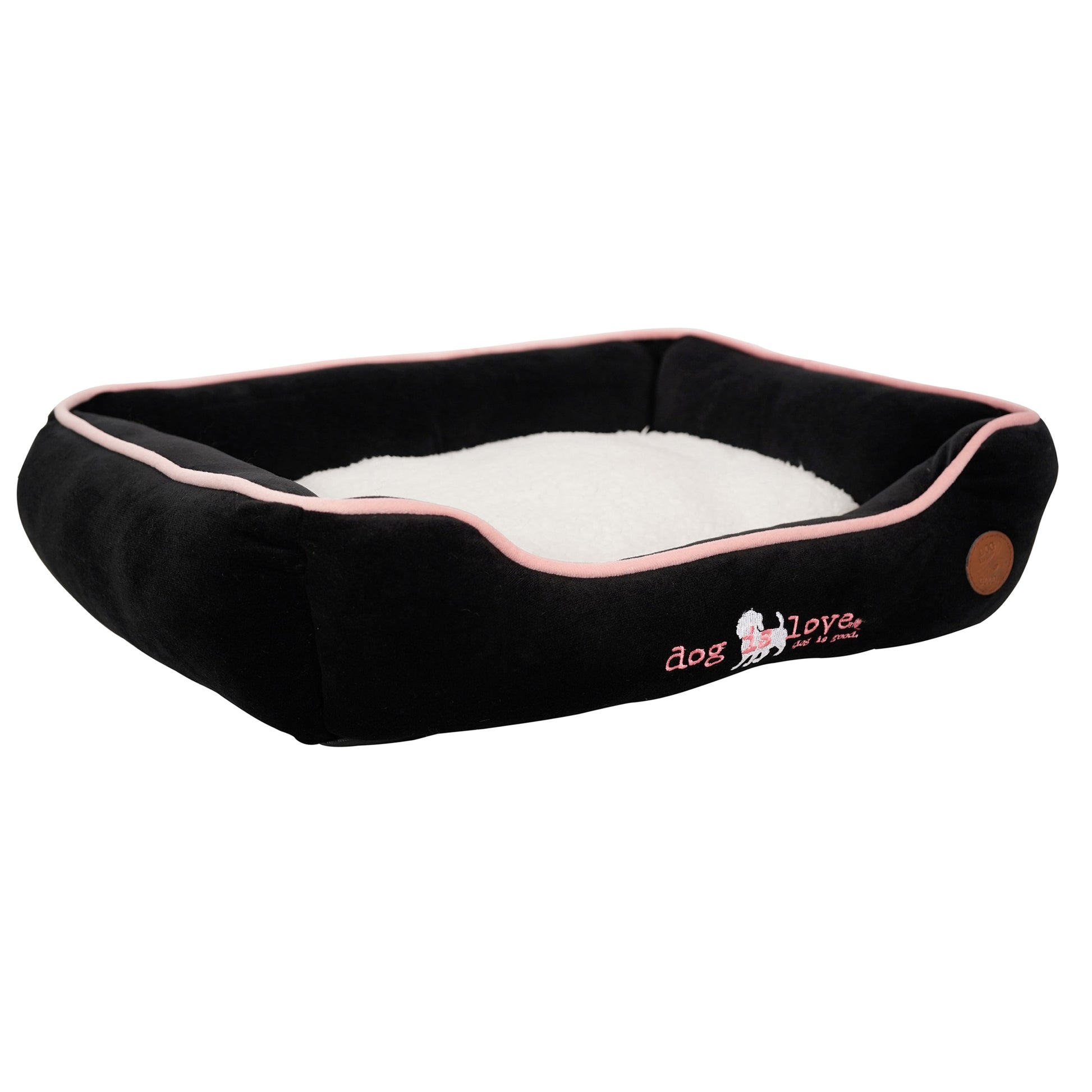 Dog is Good Large Cuddler Dog Bed - Plush Pet Bed with Bolstered Sides & Sherpa Cushion for Dogs and Cats - Features Dog is Love Design (36x27x8,Black)